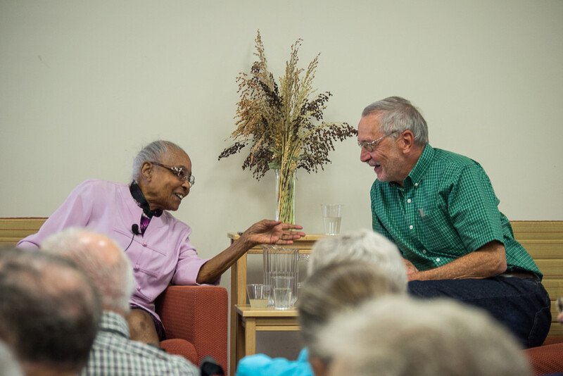 There is a small group of us who have been dreaming of widespread awareness of the Renfrow story for several years. Dan Kaiser started researching the Renfrow family around 2014 for his Grinnell Stories blog. It was because of him that I first made contact with Edith and was able to scan dozens of her family photos in 2015 for the library archives. On that same trip, an overflowing crowd at the library heard Dan interview Edith. At age 101, she was dressed in a sharp pink dress and charmed the crowd with her wit and life wisdom. You can watch the video here.