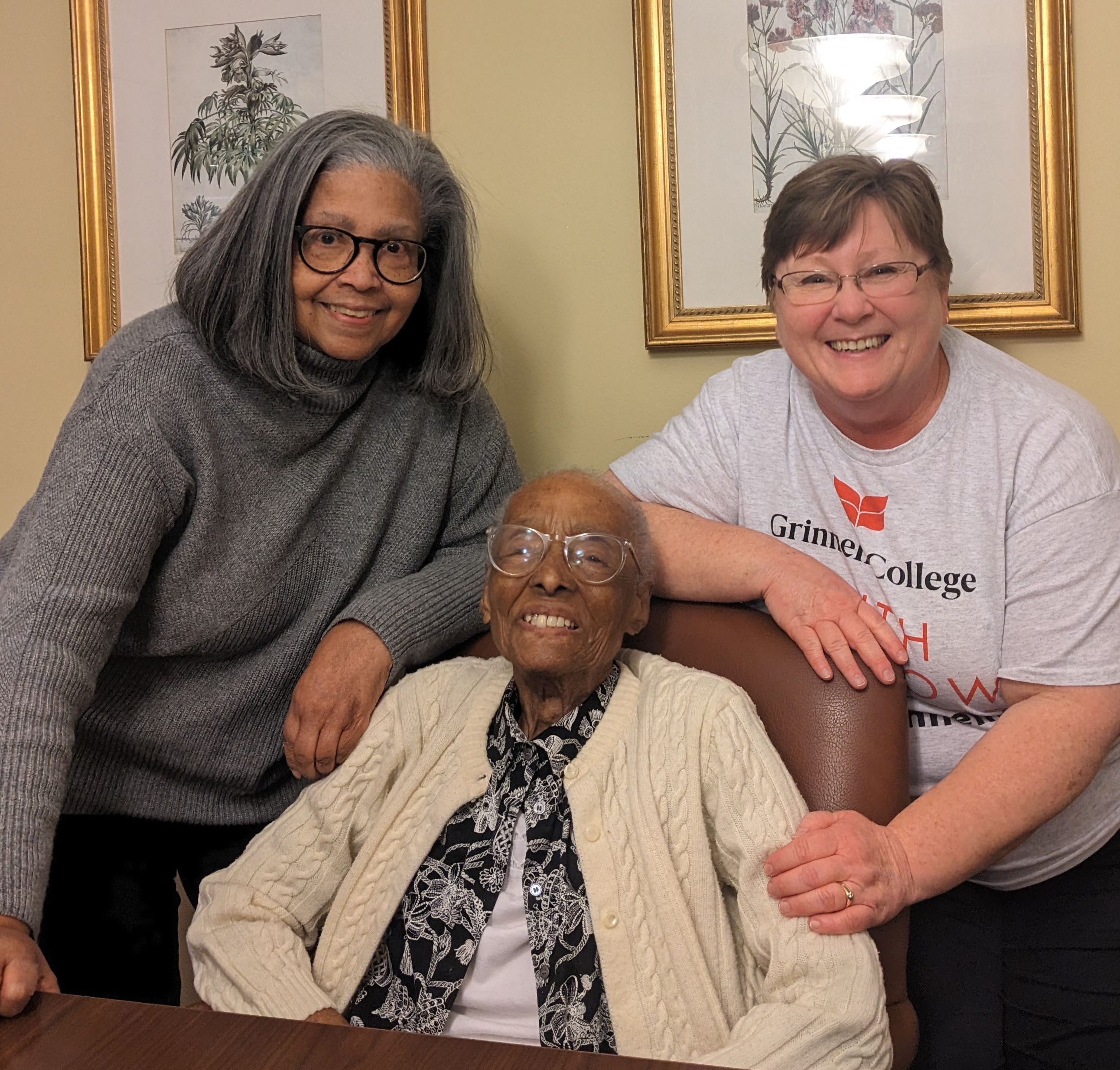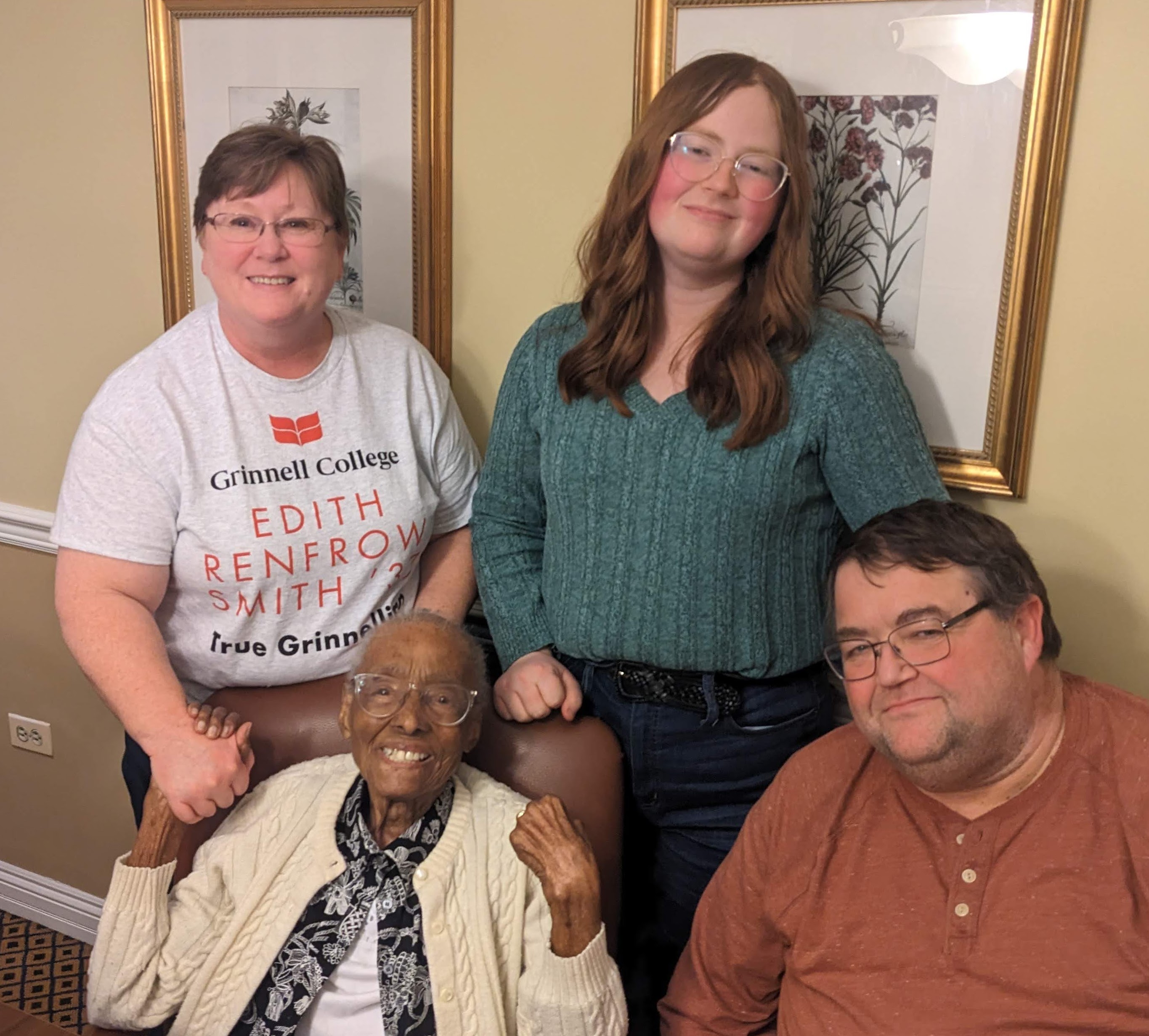We finished up with Erica and then two more wonderful people joined us, Hannah Viti and Ari Mejia. Hannah is a former student of Tamara’s. Ari is a Community Storytelling Producer for Vocalo Radio in Chicago. Together they have done some incredible oral history projects. A couple of weeks ago, they came to Grinnell to do two oral history workshops, one for Tamara’s class and one at the library. They both live and work in Chicago and were very excited to meet Edith. I was honored to introduce them and have them with us during the reading. Their intention is to do some focused oral history work with Edith and Alice in the weeks and months to come. I can’t wait to hear the result.