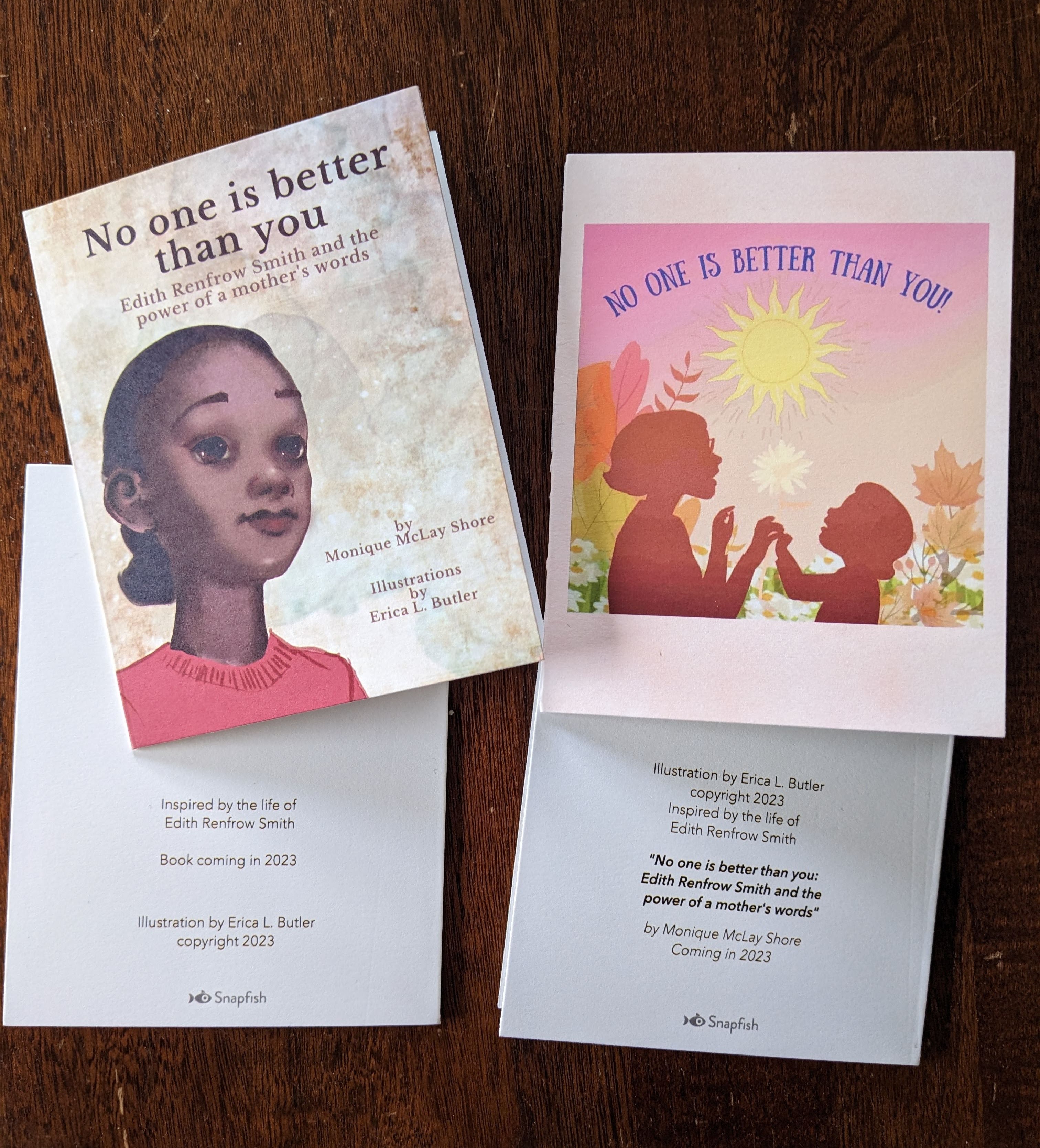 Erica and I have been chatting about ideas. I used a couple of the images she created and made up some notecards that I plan to use for project related communications. I’m going to take some to give to Edith and her daughter, Alice when we see them in a few days. Would something like this sell? We’re toying with some other ideas of things we might do. I’m doing a sneak preview read of the story at the Grinnell College Reunion weekend in June, as well as a talk about Edith, so it might be nice to have a few things in place for that event. We’re also just doing lots of chatting back and forth about illustrations as we try to hone in on the style and layout and such.