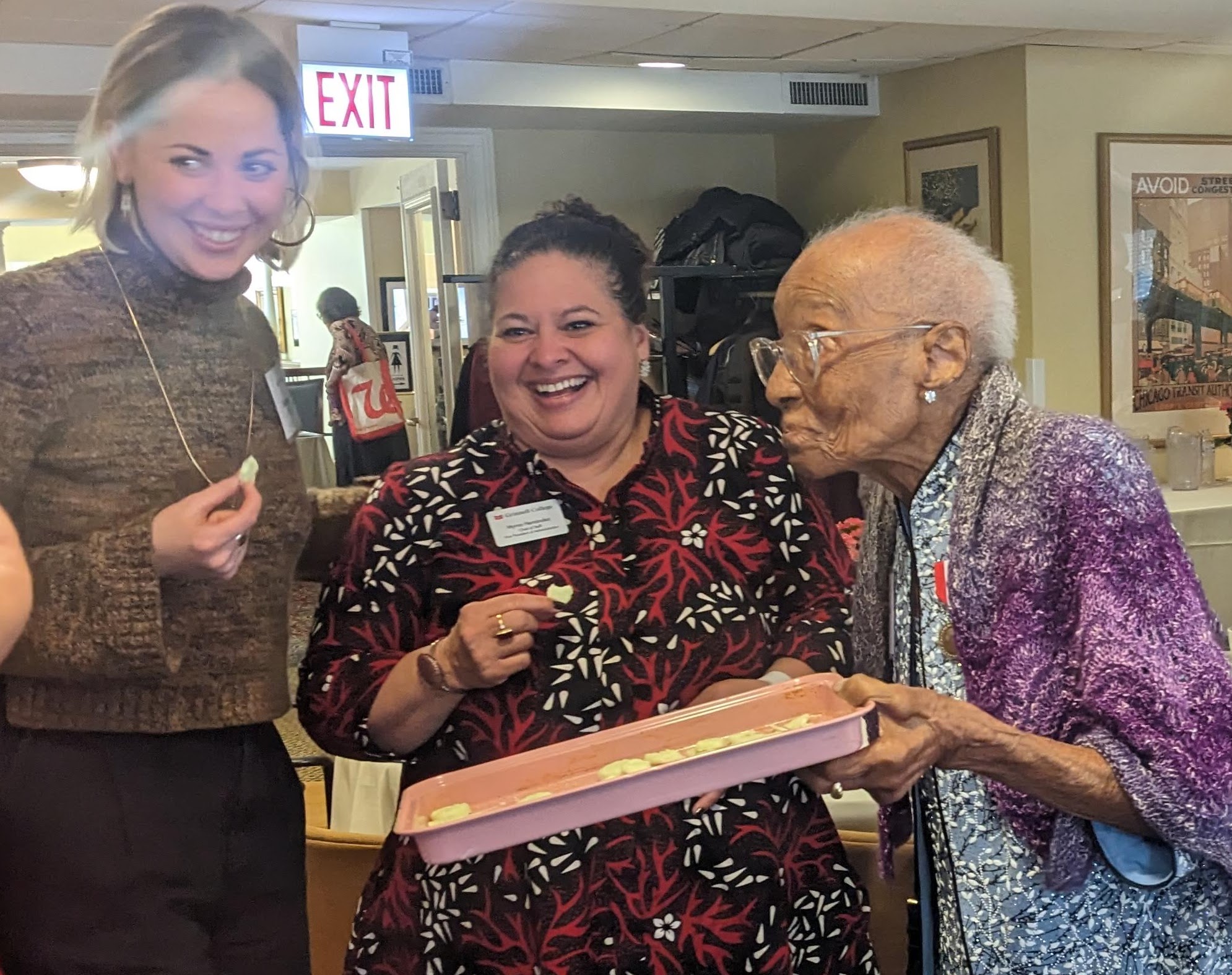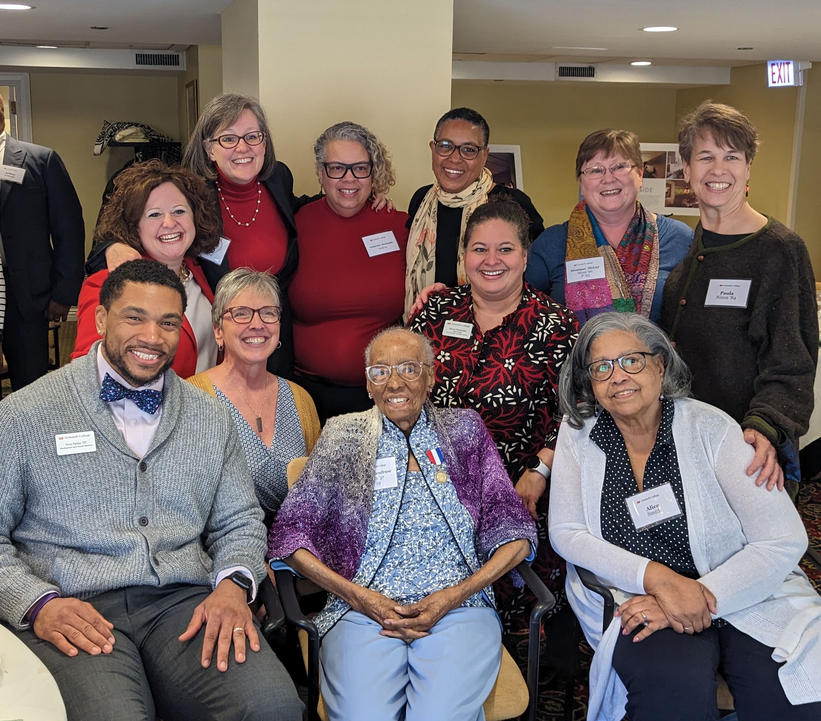 In a lovely room in Chicago’s Brookdale retirement community, a group of family, friends, and fellow alumni gathered April 26th to celebrate Edith Renfrow Smith and the naming of Renfrow Hall in her honor. The guest of honor was dressed in a sparkling new pantsuit purchased by a relative who came from Atlanta just for this event. Others had come from around the country to share in the celebration. Their love for her and pride in their family permeated the air and rested as a blanket of joy and delight on each person present.