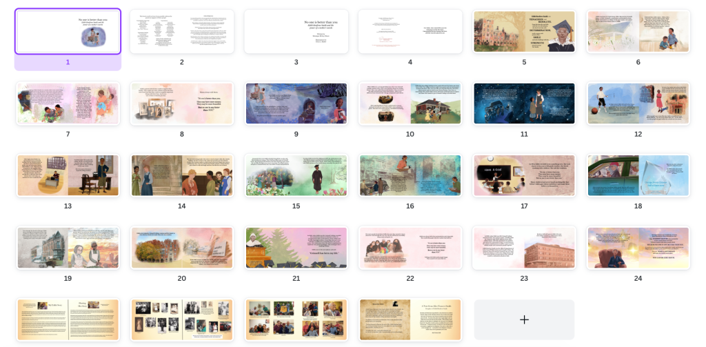 Erica has pushed through the pain and inconvenience of a nasty sprained ankle, a fall she took just as I was leaving for an overdue vacation. Her time of recovery and my time away coincided nicely but she is still dealing with pain. Despite all of that, she has done some beautiful work – refining each page and making every one simply beautiful, in my opinion (and I hope you agree!). Alice has been awesome and, just today, helped clarify a page that was just not right and helped me realize it was not really needed.