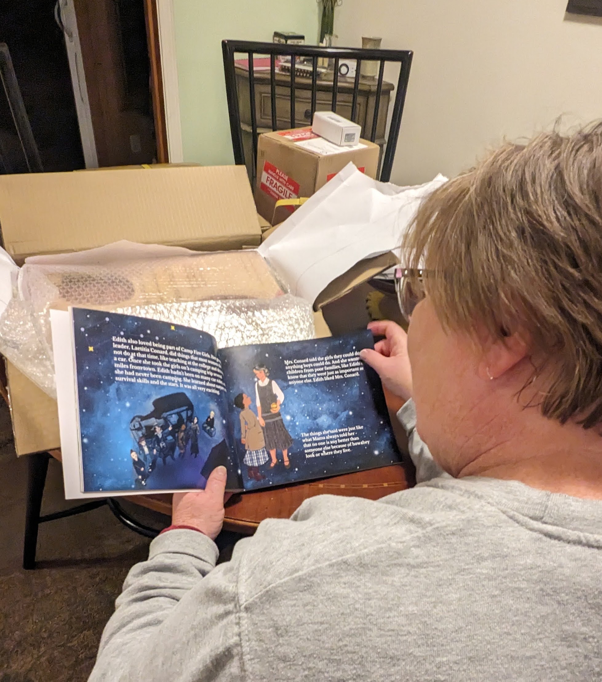 My husband, Craig, realized that the date was November 25, and that it was eight months ago, on March 25, that I first read the story to Edith and Alice. More than anyone, he knows the long hours on the computer and the sleepless nights this has involved. We sat and reveled in or shared delight in the beautiful outcome.