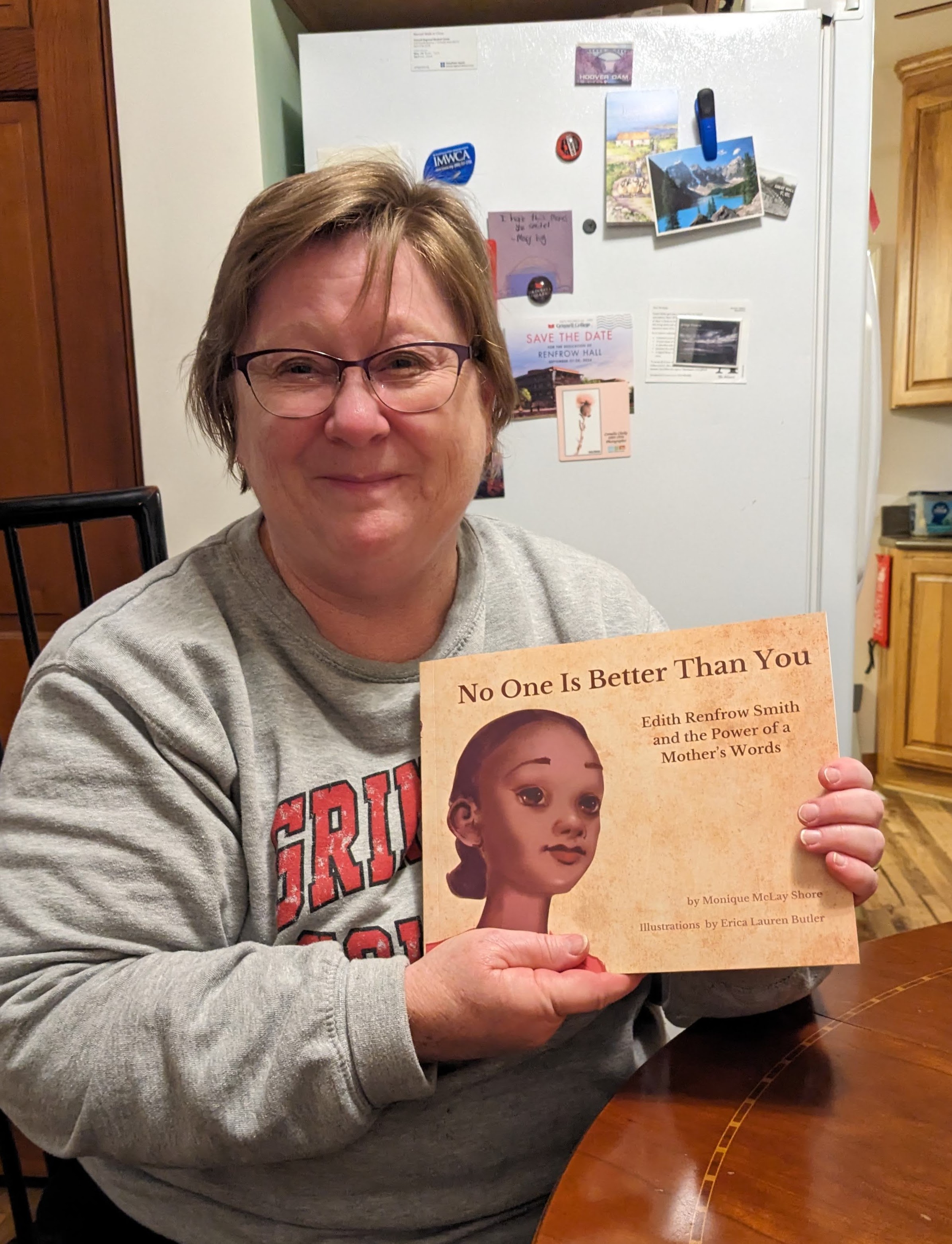 When I looked at these pictures this morning I realized a couple of things. First, isn’t it perfect that I had on my favorite Grinnell College sweatshirt! And when you look beyond my flushed with emotion face to the hodgepodge of items on the refrigerator, there is a “Save the Date” card for the Renfrow Hall dedication just over my left shoulder.