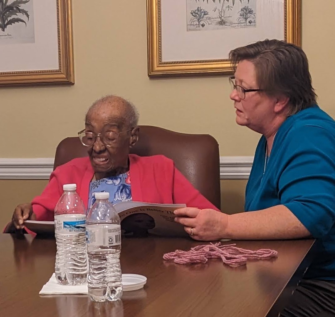 From the beginning I had two goals. First, I desperately wanted to get the book done while she was still with us. She was 108 years and 6 months old when I started. Every day had to count and I could not take anything for granted. Seeing her look through the book for the first time, her beautiful hands going over each page and each detail, knowing that this goal had been met filled me with incredible joy.