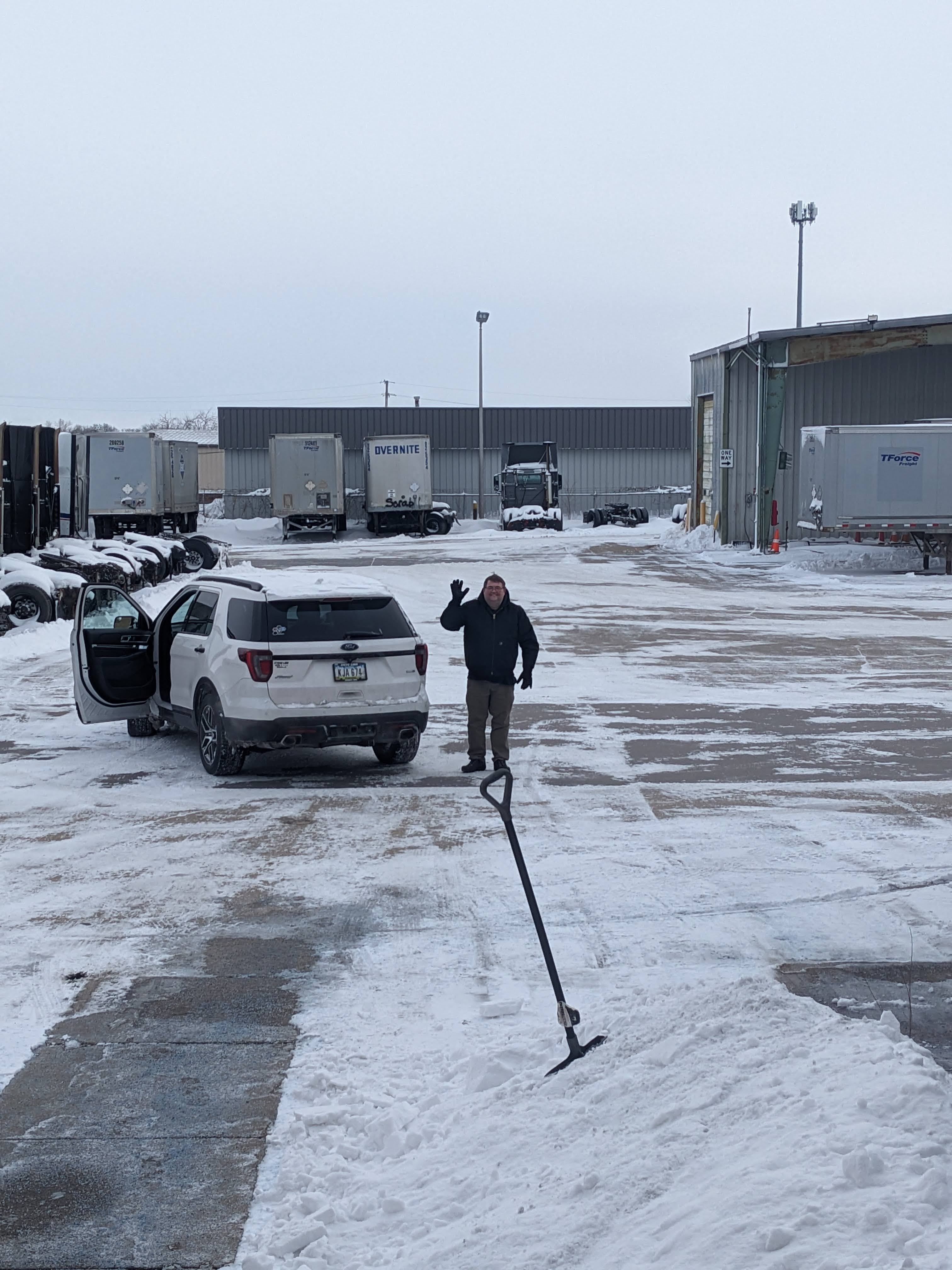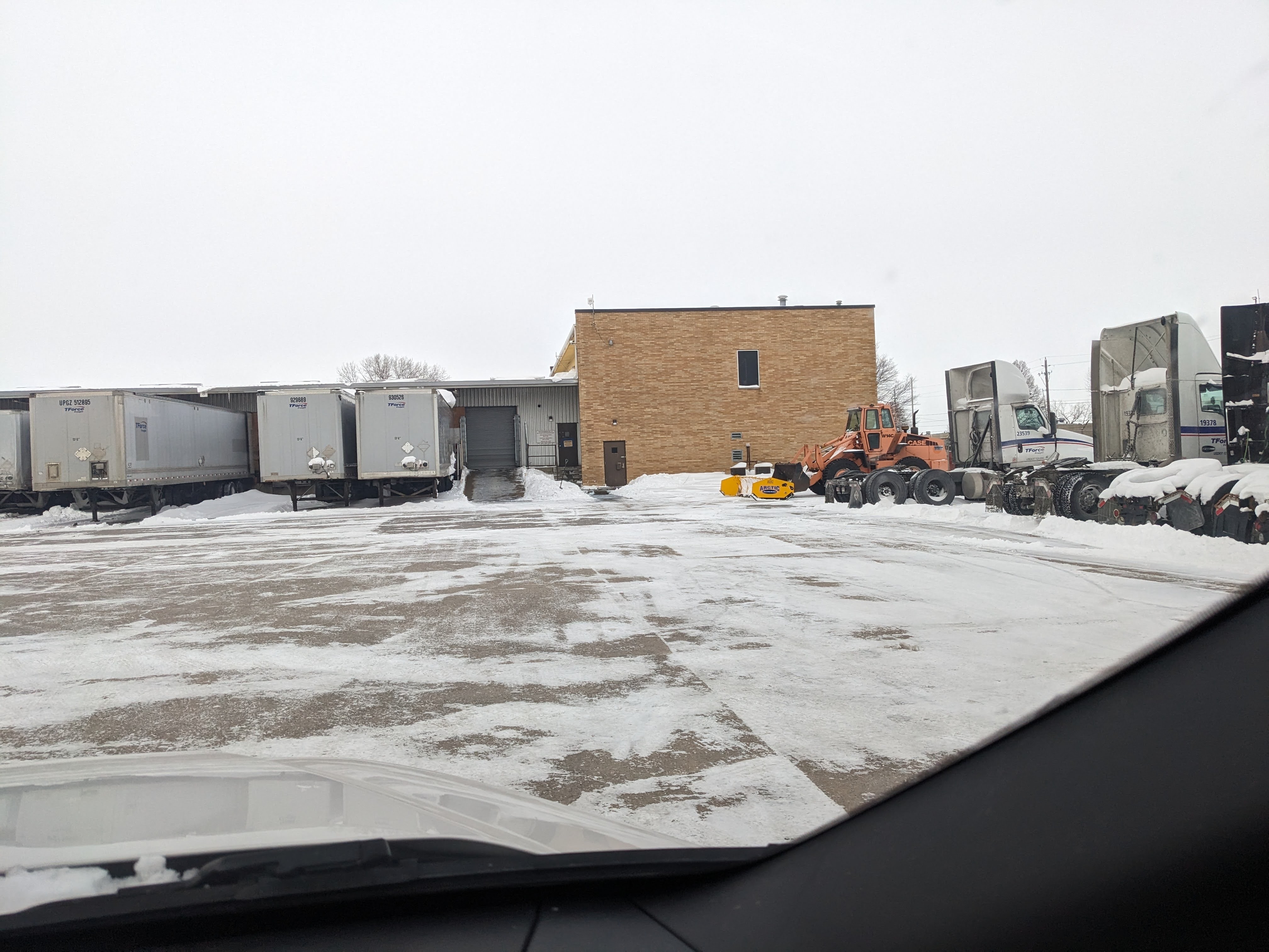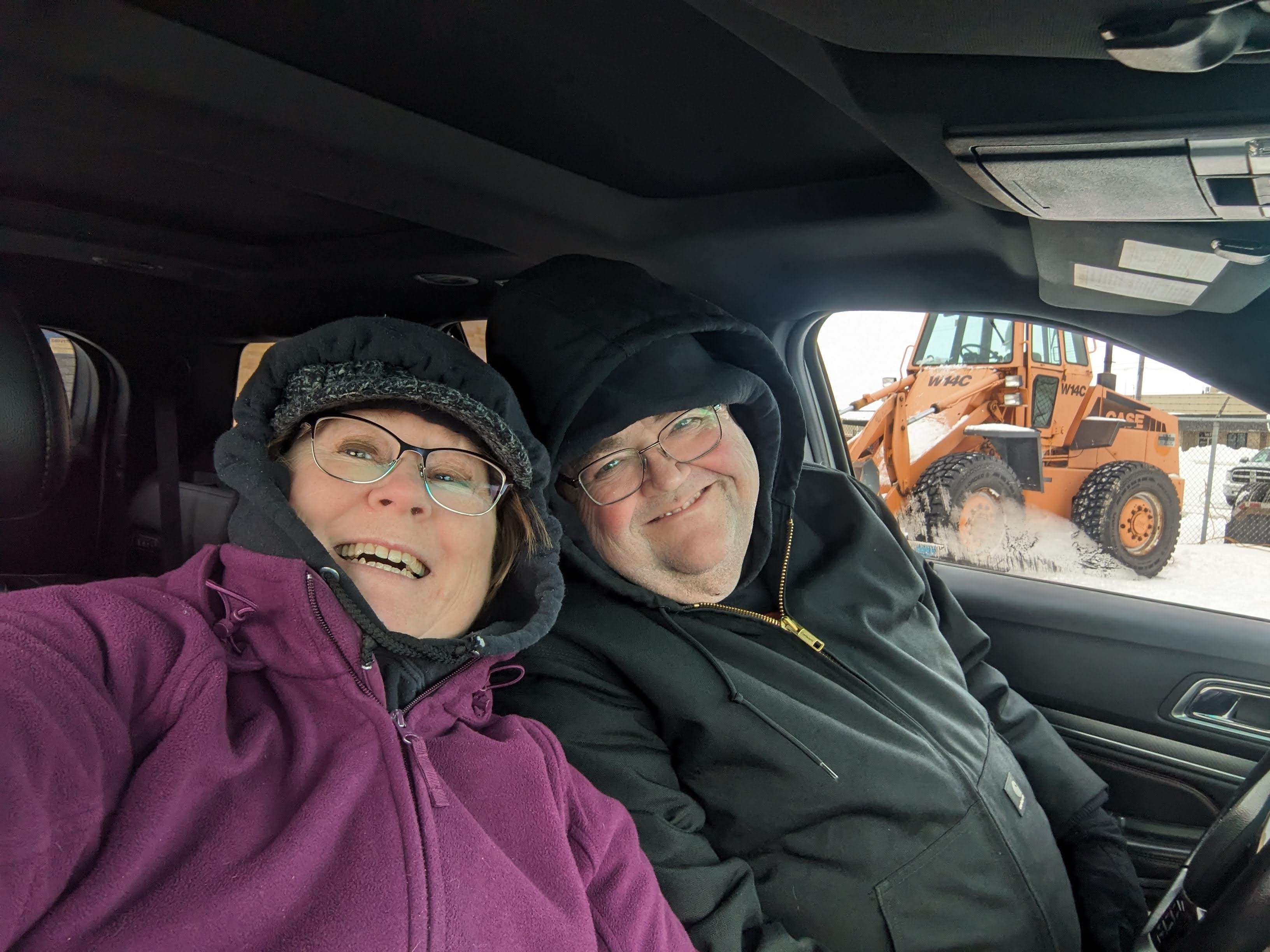 While he drives I research what might make cars develop tire-out-of-balance type behavior in cold weather. Since both our cars were out in the cold, sitting in the snow, they both likely have some ice frozen solid somewhere in one of the wheel parts – hence, making it behave as if a tire is very off balance. We’re going to assume that’s what it is and not worry for now. [It’s great that we have lots of garage space for Craig’s work from home shop, but there would be advantages to actually being able to park the cars inside sometimes.]