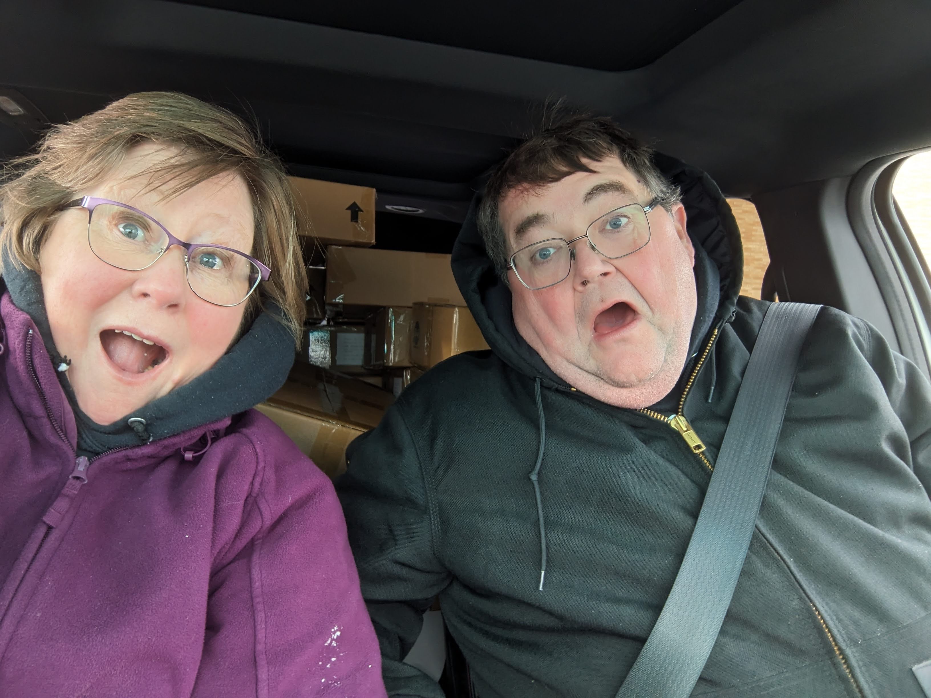 Two cars filled with gas. Two drivers wearing extra layers to guard us against the cold for the loading part of the journey. Extra winter layers packed just in case. Craig in the Explorer. Me in the Mazda. Maybe it felt a little safer having two cars, just in case something happened.