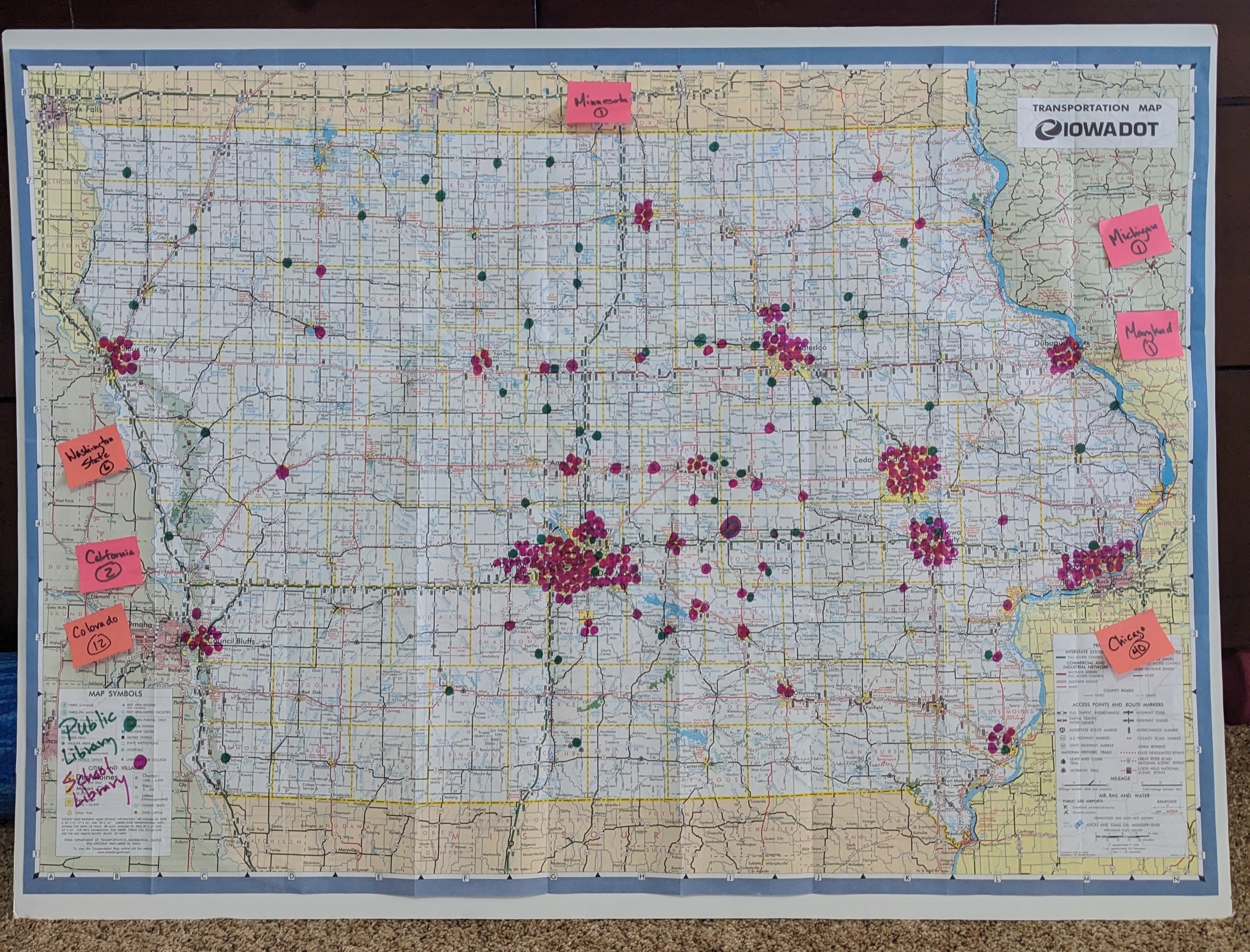 I’m happy to say that I’ve had a lot of requests from libraries around the state and have books going to 67 public libraries in Iowa so far. They are marked as green dots in the map above. You can see that many of them are going to small libraries in all corners of the state. The pink dots indicate where books will soon be delivered to elementary schools – 300 school libraries in total. I am super grateful for my friend Dawn who shared the book with her AEA Media Specialist friend. She’s excited about the book and is going to be recommending it to teachers through her curriculum work. She also helped connect me with the AEA delivery service so I can minimize the expense of sending them.