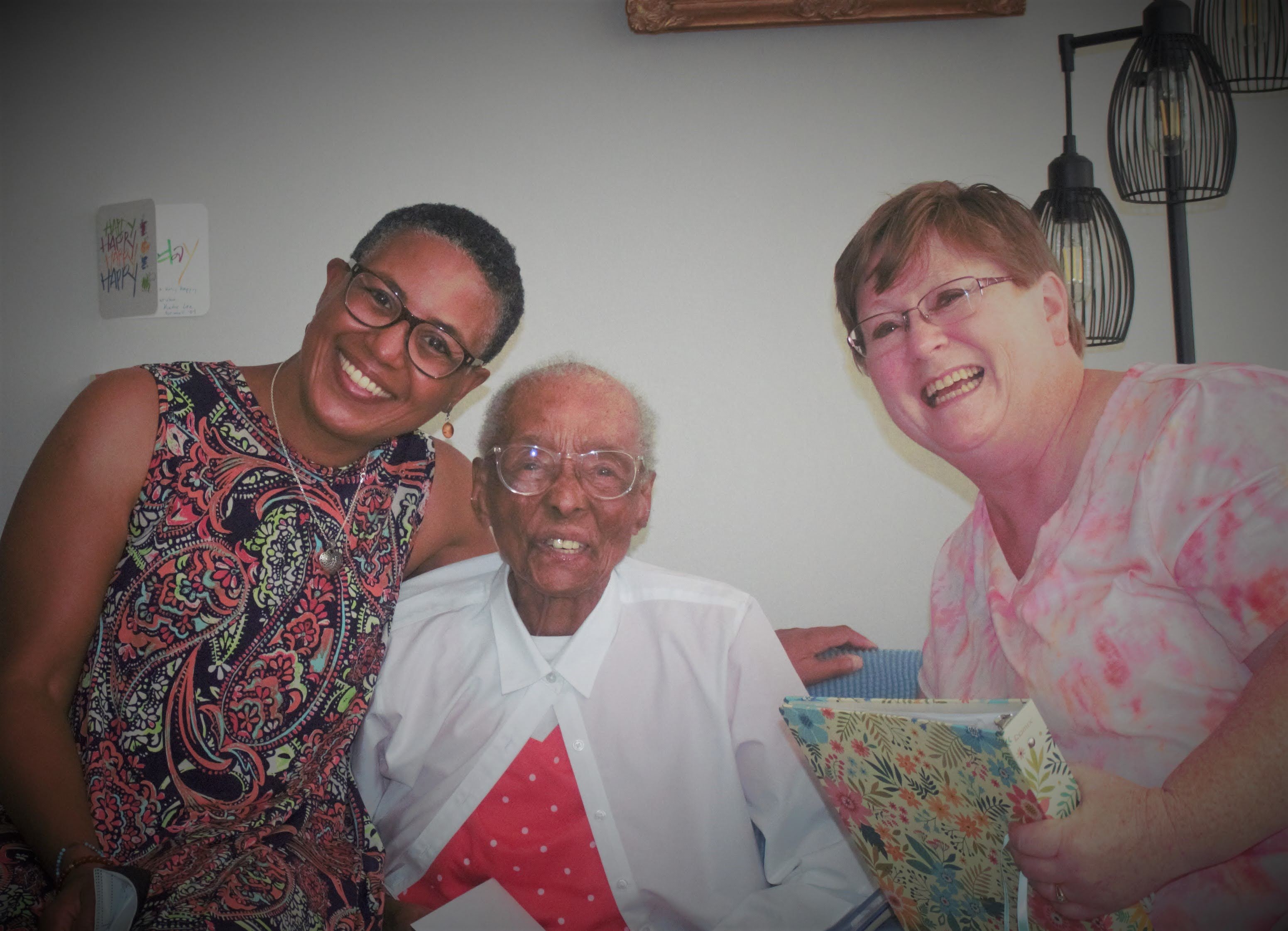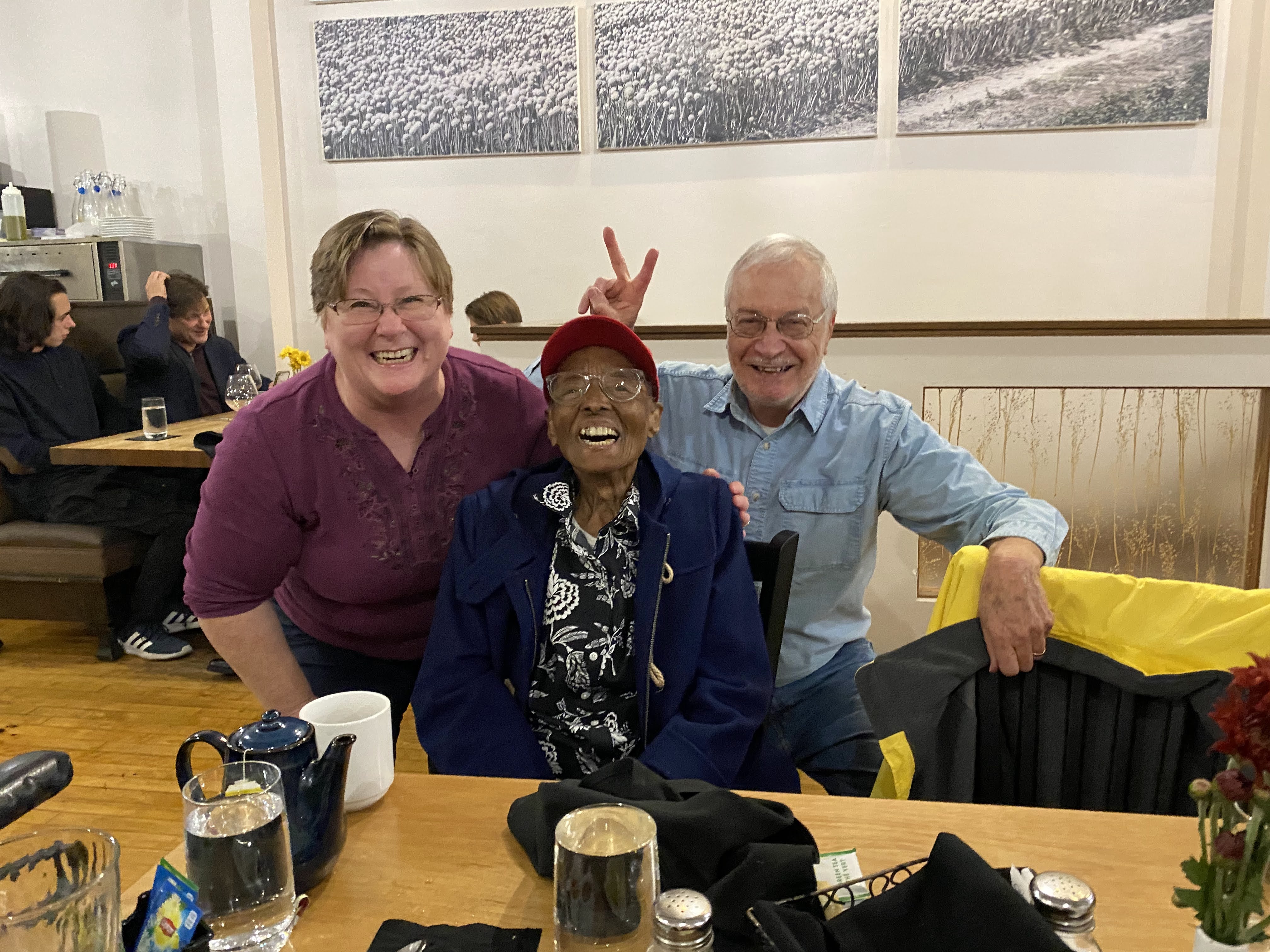 With Edith in 2019, when she was 105 years old, the night before she received and honorary degree from Grinnell College.