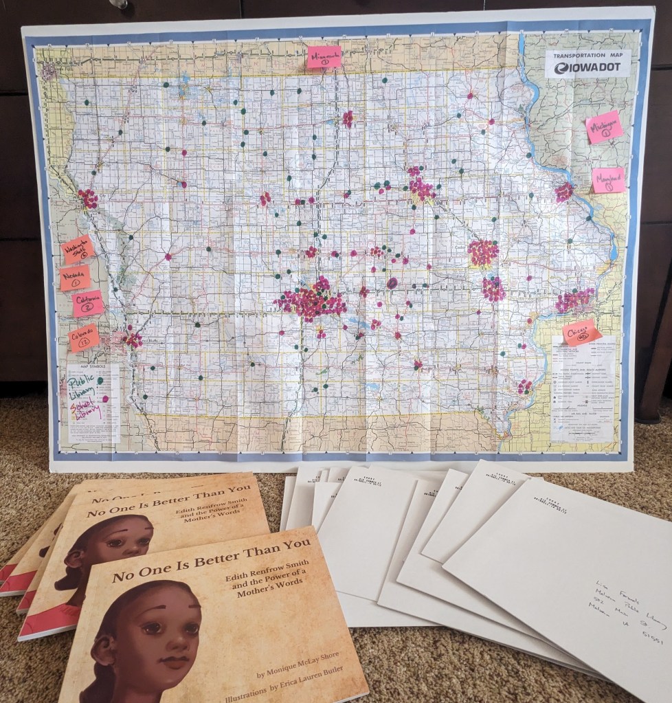 As a librarian I believe in the power of libraries to spread stories far and wide. As a part of the Kickstarter campaign, supporters donated funds specifically to help me donate copies to libraries, especially those in Iowa and Chicago, both places that Mrs. Renfrow Smith considers home. As of the end of February 2024, I have donated 300 copies to school libraries and another 100 to public libraries.